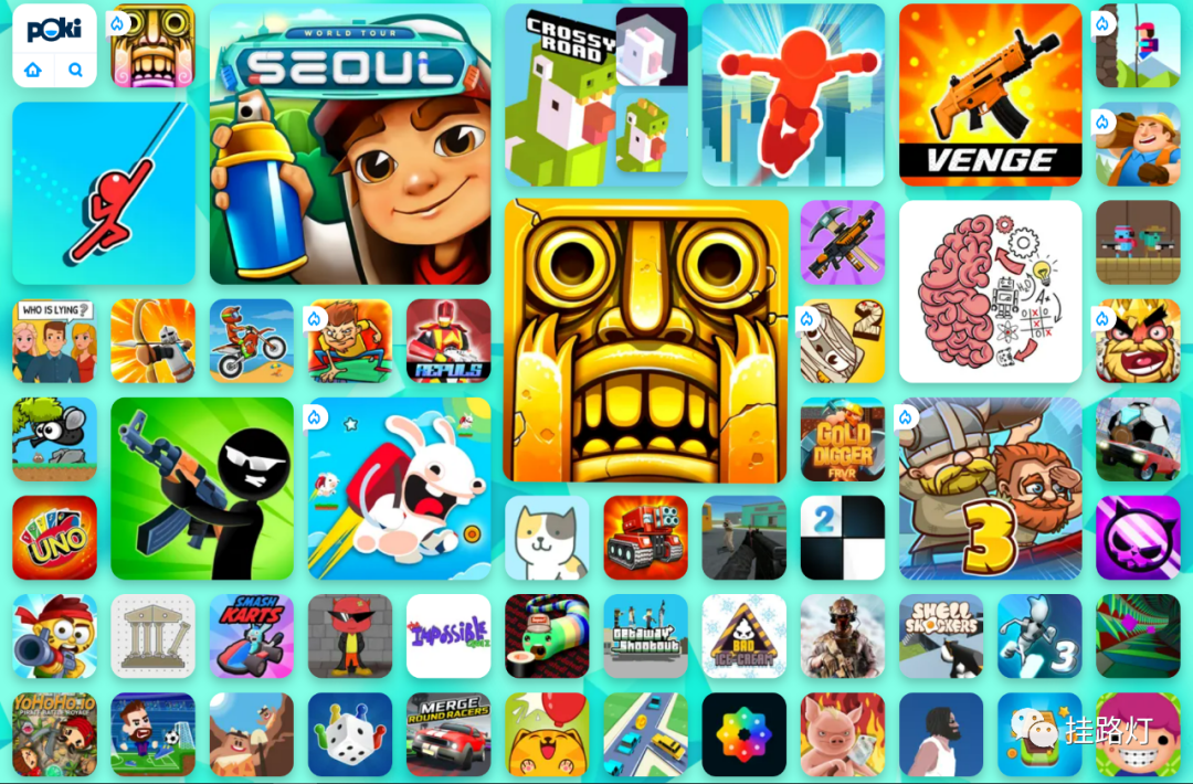 第二个网站POK游戏网,这个网站是一个3D小游戏网站,说实话盘点了这么多游戏网站,这个网站有两个最特别的地方,一可以玩到早期智能手机的经典游戏,你可以在这里玩到逃亡地铁、跑步、割绳子,以及别踩白块的游戏,想当年这些游戏都是我在自习课上摸鱼玩的,现在上了班在公司摸鱼玩,我可真是不忘初心了。