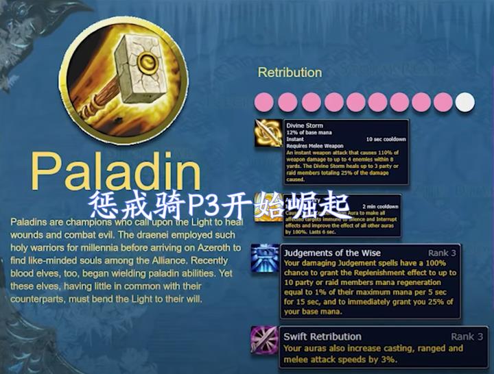 WLK版本是惩戒骑正式崛起的版本,新技能神圣风暴让圣骑士对时间轴的利用率大幅提升,圣印舞也成为历史,加上强大的爆发输出能力和对亡灵怪的巨大优势,以及对巫妖王小怪华尔琪的特殊优势,让惩戒骑成为输出顶流,大后期还可以拿上橙斧和瓶子,更是一发不可收拾。