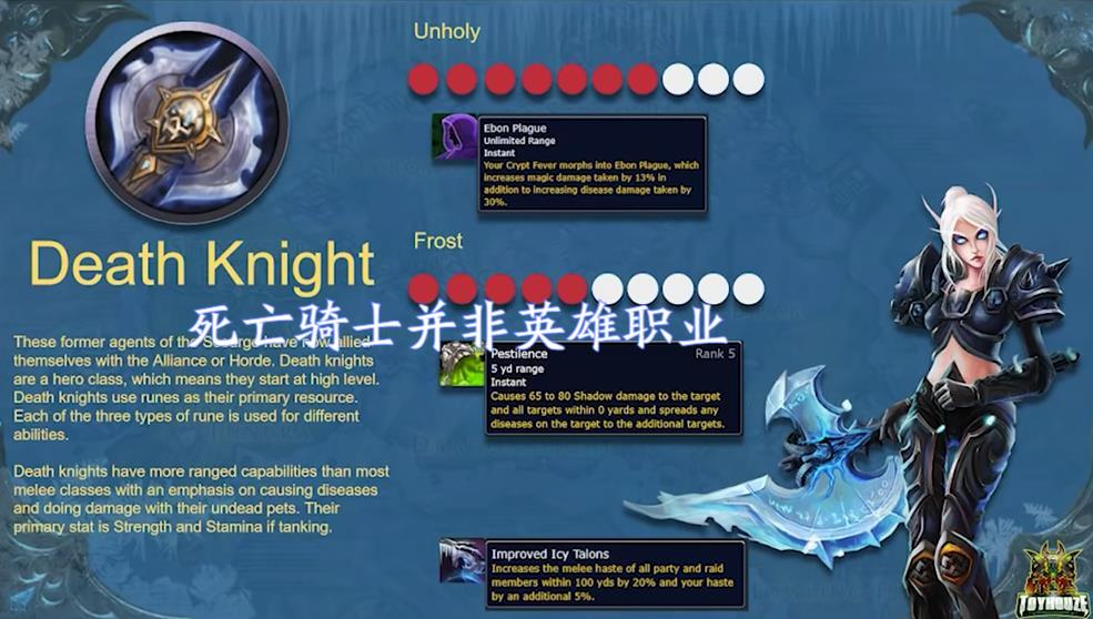 作为WLK新增的英雄职业,死亡骑士的表现其实很一般,目前B测中死亡骑士的超强表现建立在符文BUG之上,死亡骑士整体的输出表现为T1尾、T1强的水平,当然玩家的水平足够高,还能拿上橙斧的话,常常也能打到DPS第一。邪DK评分:7分;冰DK评分5分。