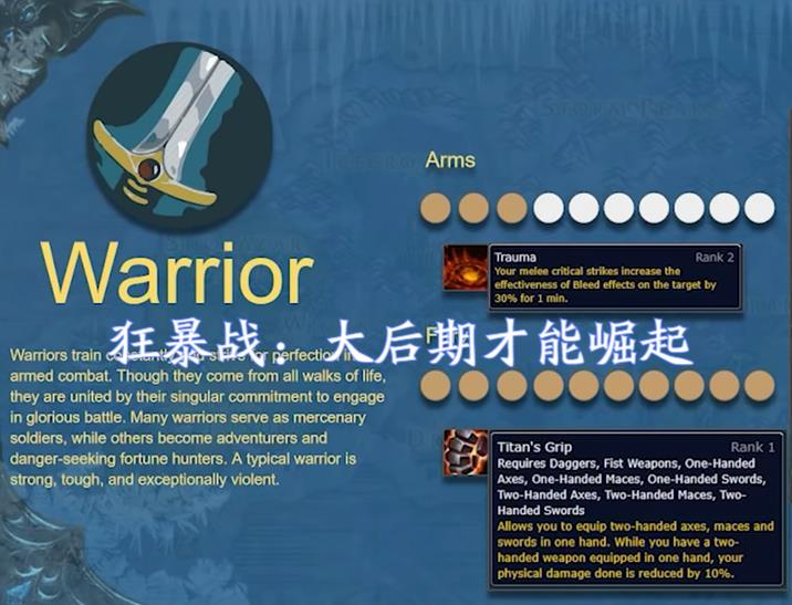 WLK怀旧服还能玩战士吗?当然能玩,前提是玩家有一颗强大的心脏和装满金币的荷包。前期的战士真是吃土职业,要什么没什么,但是到了大后期,狂暴战直接变身为神,橙斧狂暴战是理论上WLK最强的输出专精。WLK狂暴战评分:10分;武器战评分:3分。