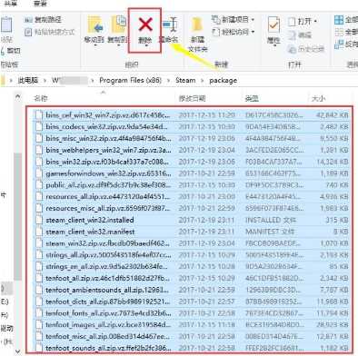 出现这种情况我们可以通过清除package文件夹来解决这个问题,因为该文件夹中的所有文件全是升级steam的文件,如果我们将其删除掉的话steam就必须得重新进行更新,更新完毕就可以解决该问题了。