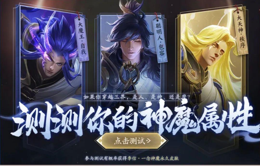 第三个活动,来自王者荣耀的限时活动面板。是李信一念神魔的属性测试活动。这个活动,有概率可以获得一念神魔的永久皮肤。