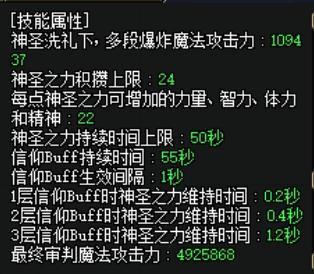 8. 二觉点满是无疑的,这次改版二觉首先是满层数变为24层,其次是在二觉持续期间,奶爸给队友加一次神圣之光,会产生一层信仰BUFF,如果给三个队友加神圣之光后会变成三层,信仰BUFF到3层后就可以保证二觉的持续时间不会减少并一直保持,这就是直播时一直跟大家讲的-全程二觉。