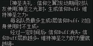 但是信仰BUFF必须是3层时才能保证全程的二觉,也就是必须4人组队情况下。而且信仰BUFF也是有持续时间的,所以大家要持续不断的及时补充信仰BUFF。