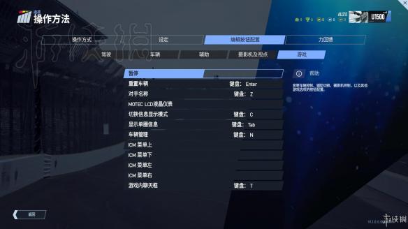 目标本作支持控制器(手柄/方向盘)、鼠标+键盘、键盘三种控制方式来进行游玩。默认操作方式是鼠标+键盘,对于大部分玩家而言应该是相当难适应的,因此更加推荐换成键盘操作。此外,游戏预留了大量精细操作键位,可供玩家自行设置。