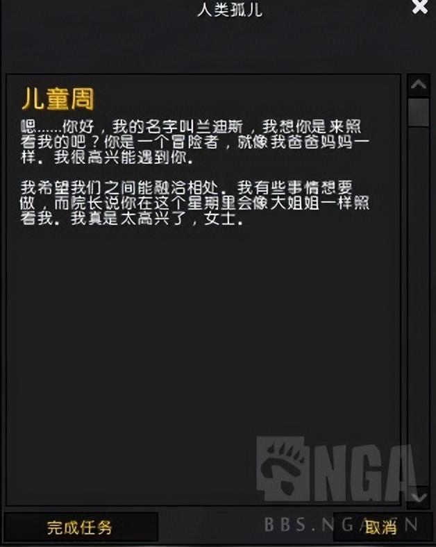 我们需要与其对话表达出我们想要在儿童周帮助儿童的意向,孤儿监护员才会继续给予我们任务。