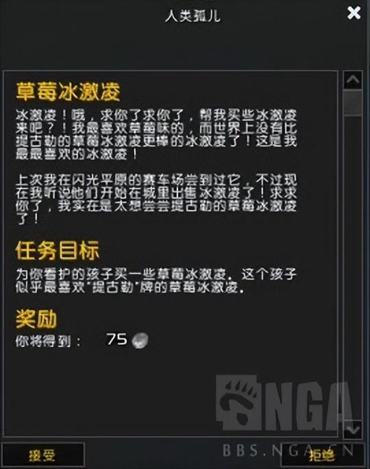 而他最喜欢吃的冰激凌在暴风城银行外或者奥格瑞玛AH外的好心人处就有卖的。