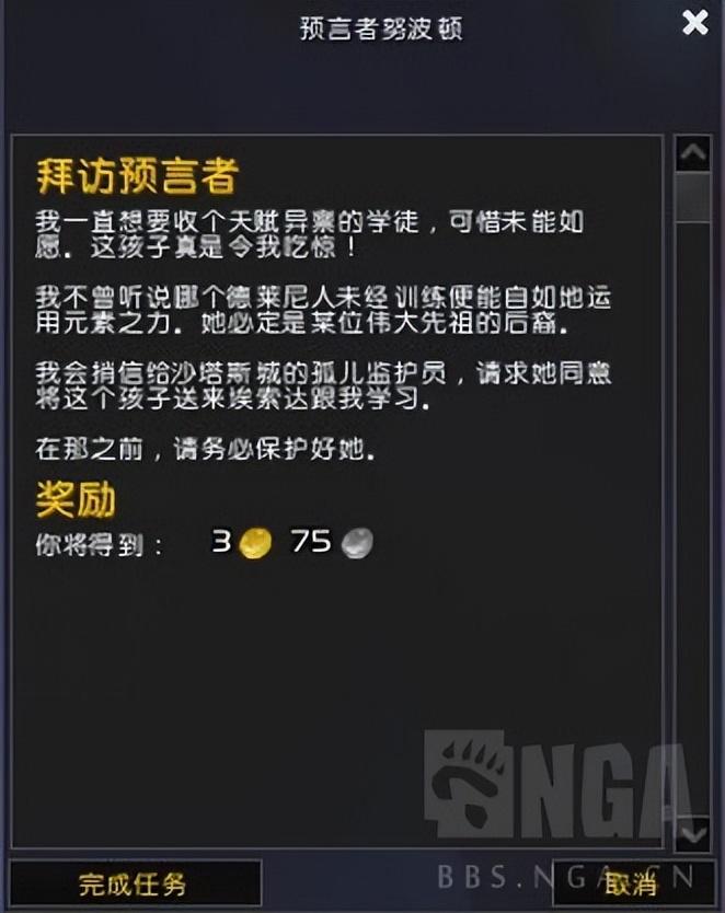 纳鲁告诉我们的这位小朋友未来无可限量..又让我们带领多尔南去找预言者努波顿。多尔南发现努波顿就是一直在梦里出现的那个萨满,并且表现出了惊人的元素亲和力。