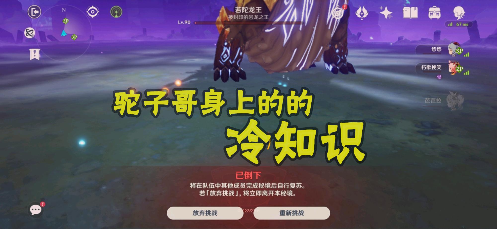 冷知识5:除了钟离以外,奶盾基本上都能打若陀龙王,比如猫猫有盾有奶,只要会躲,打若陀龙王很轻松。就算是女仆和芭芭拉,只要会躲伤害,也能刮痧刮死驼子哥。