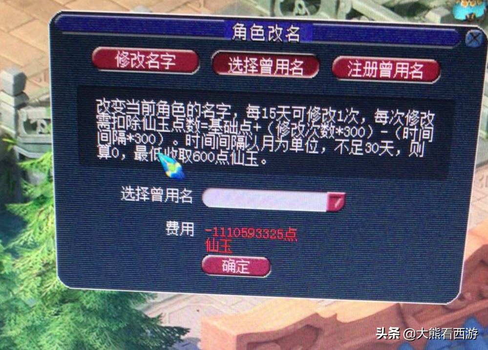 大熊觉得这应该是不小心卡到梦幻的什么BUG了,可能重新登录一下游戏就会能恢复正常了,毕竟这种情况实在是太罕见了。但没想到今天又有另外一位玩家表示自己在改名的时候也遇到了BUG,并且这次并不是提示要收取高额的仙玉,而是改名费用变成了负11亿仙玉!