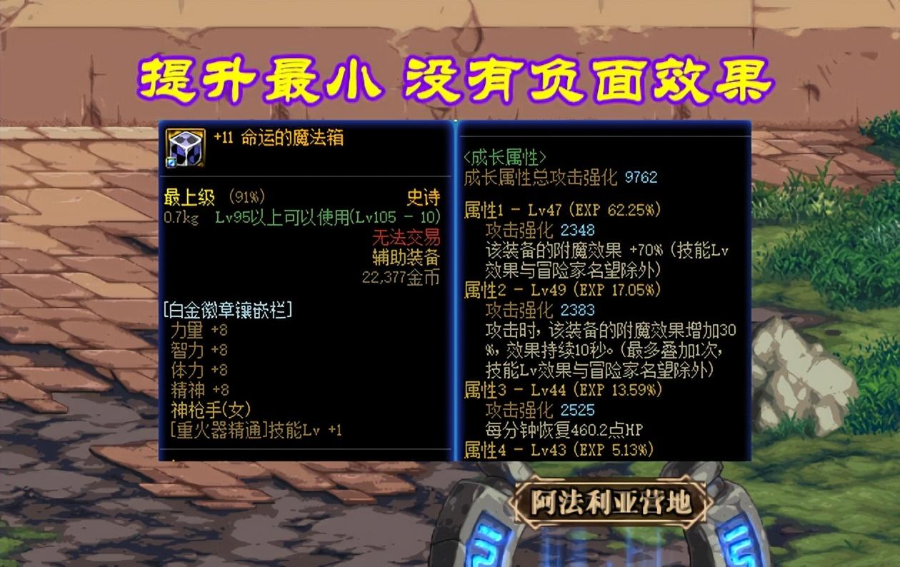 所以这样看来,“附魔左槽”虽然不是提升最大的,但却是提升最稳定的,只要你有新春宝珠,那么就可以全程、稳定、无压力触发完美属性。