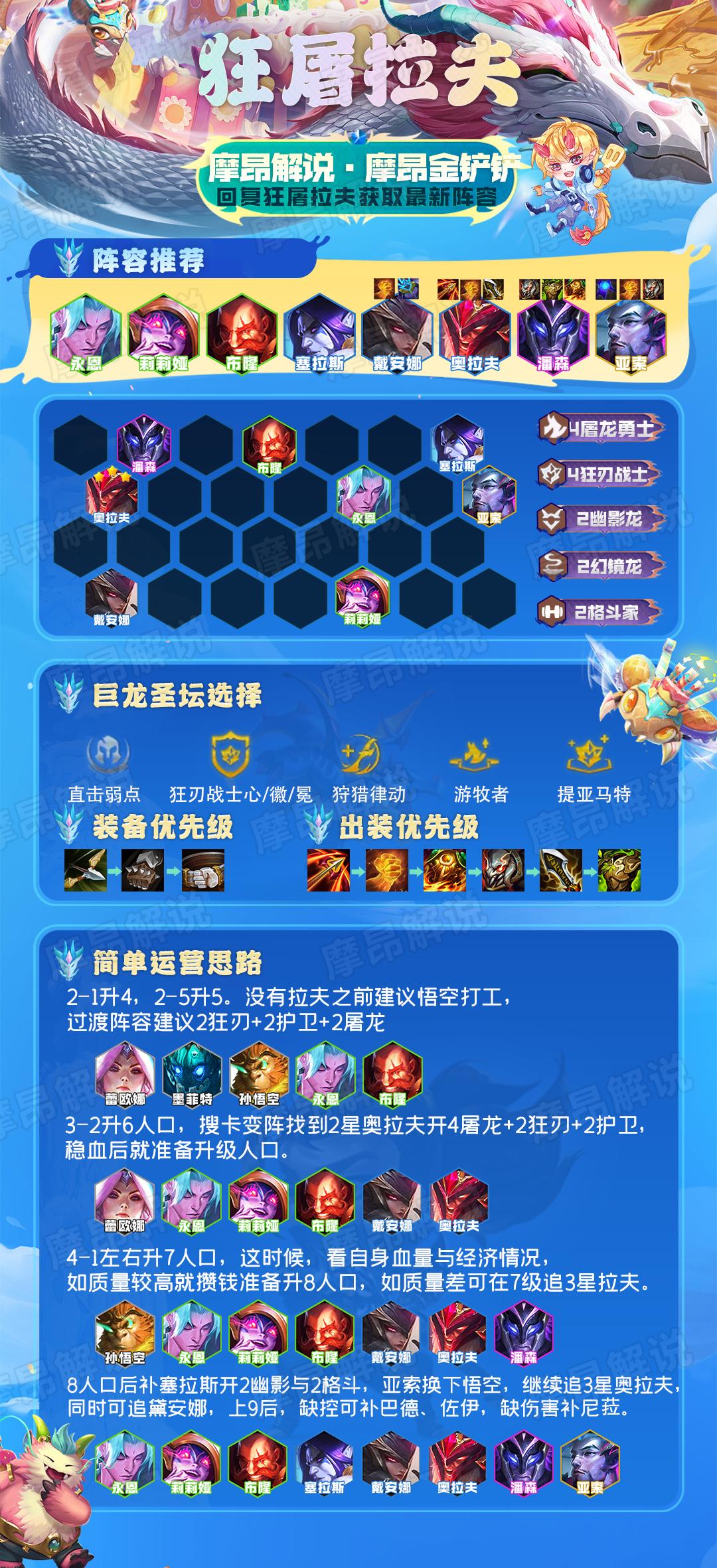 冒险射阵容这版本由于6怒翼的削弱,冒险霞阵容的强度有所下降,另一方面呲呲的增强,以冒险图奇/呲呲主C的阵容应该会崛起。