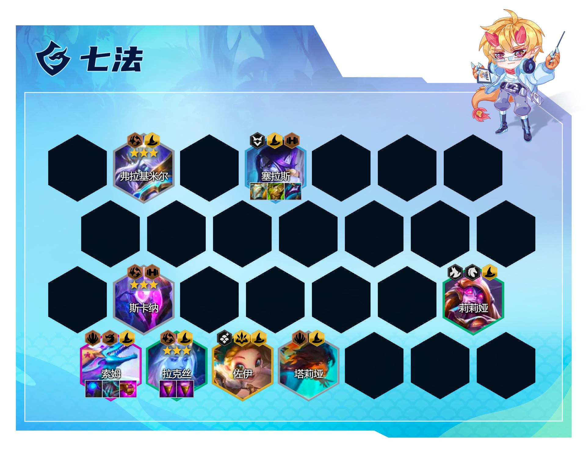 七法师这版本崛起,如果诺姆希是法师就不上索姆,这套阵容测试中强度特别高,吃分与吃鸡比较稳定。