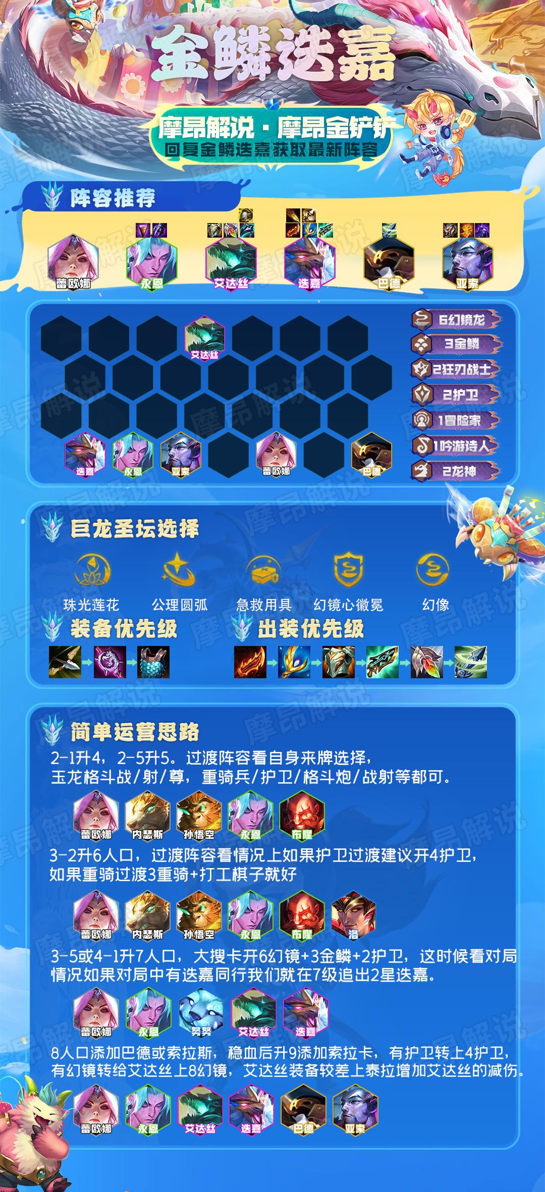 开始小编觉得这套阵容强度一定下降的,但经过测试这套阵容吃分能力还是那么高,只是后期上限拉低了,吃鸡难度难度较大。但选择迭嘉体系的同行少,成型比较容易。