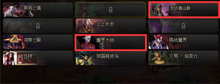 魔界大战和流放者山脉都是小伙伴们获得护石和符文的地方。消耗30点疲劳就可以入场,奖励也是每周一次。