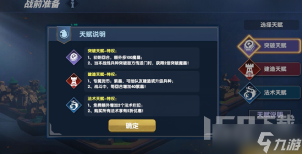 3V3对决初始阶段可以选择对应天赋,包括突破天赋、建造天赋、法术天赋,不同天赋所带来的收益也不同。