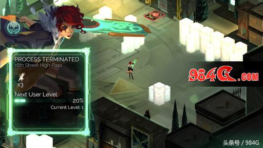 《晶体管(Transistor)》的剧情完全在寥寥数语中变传递给了玩家,主角的无法发声,旁白的只言片语共同营造出了游戏的全部剧情内容,在此984G十方不做剧透,也希望大家在第一遍通关时尽量不要查阅攻略,严格意义上来讲,本作的难度并不大,一旦看了攻略本作的乐趣就全无了。