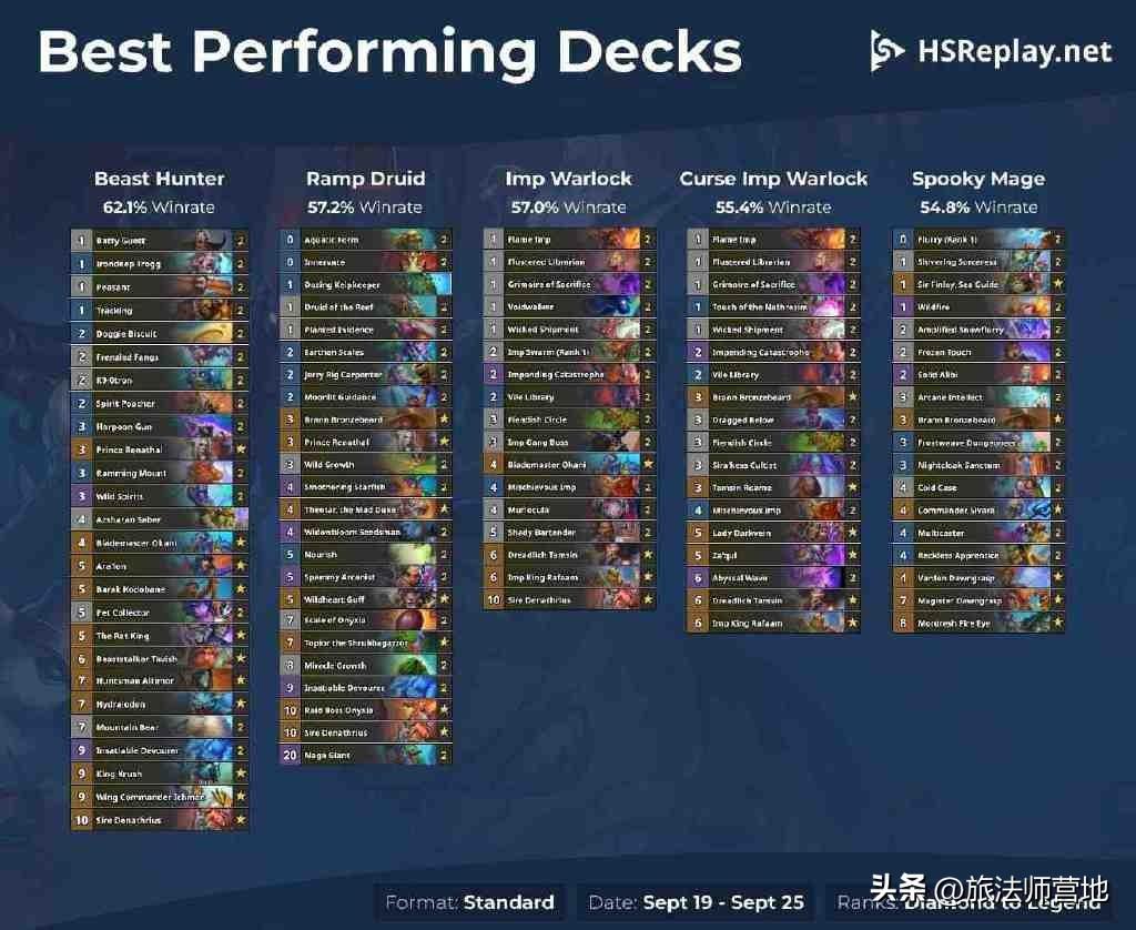 今天的卡组是五套HSReplay大数据里钻石到传说分段高胜率卡组,在迷你包之前日报应该先不更新了