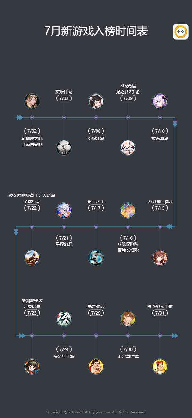 7月份新游戏入榜时间、新游Top10以及新游戏类别分布