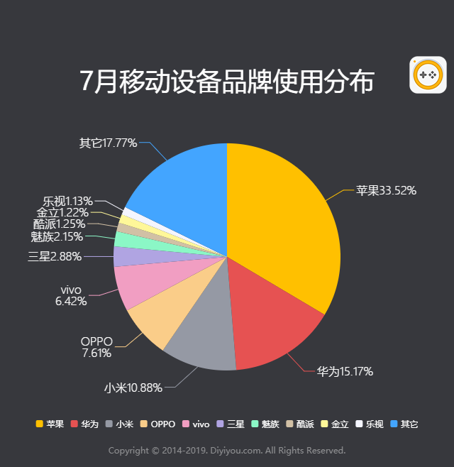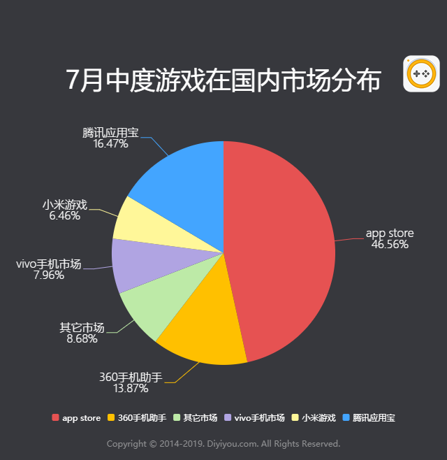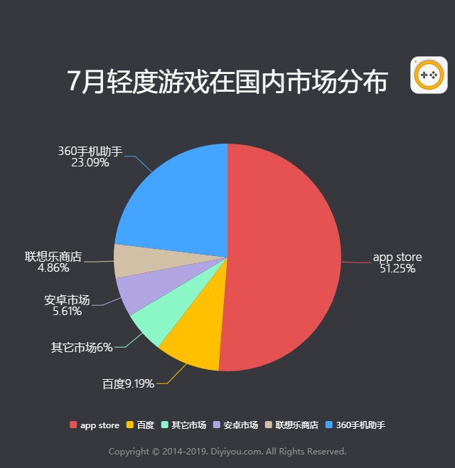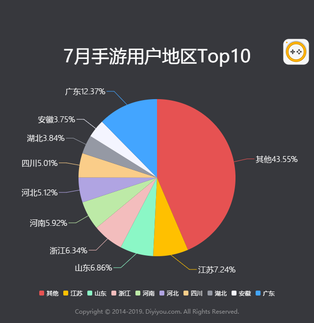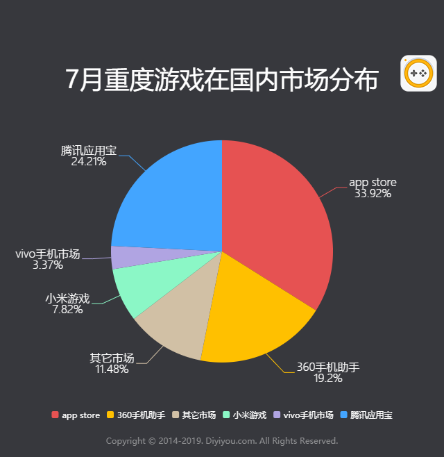 7月份重度、中度、轻度游戏使用在国内市场分布