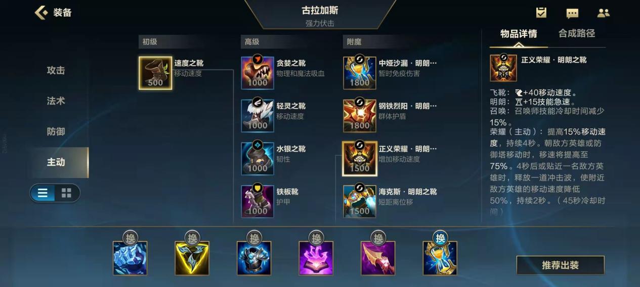 想要实现超短的E技能CD,装备方面必须要给足技能急速属性,所以出装基本都是以技能急速高的装备为准。其中,冬之降临是最为核心的装备。该装备可以升级成芬布尔之冬,可以进一步提高装备属性,且该装备的被动可以给玩家们提供1%法力转换的技能急速加成,可以把玩家们的技能急速属性全部拉满。这也就意味着,蓝量越多获得的技能急速加成也就越多,再搭配上冰拳可以让技能急速大幅度提高。三项、窃魂法典、纳什都能在提供伤害加成的同时,分别提供25点技能急速加成,能大幅度缩减酒桶的技能冷却时间。鞋子方面也是选择CD鞋,附魔则是购买金身,保证酒桶在团战中切入后的存活率。