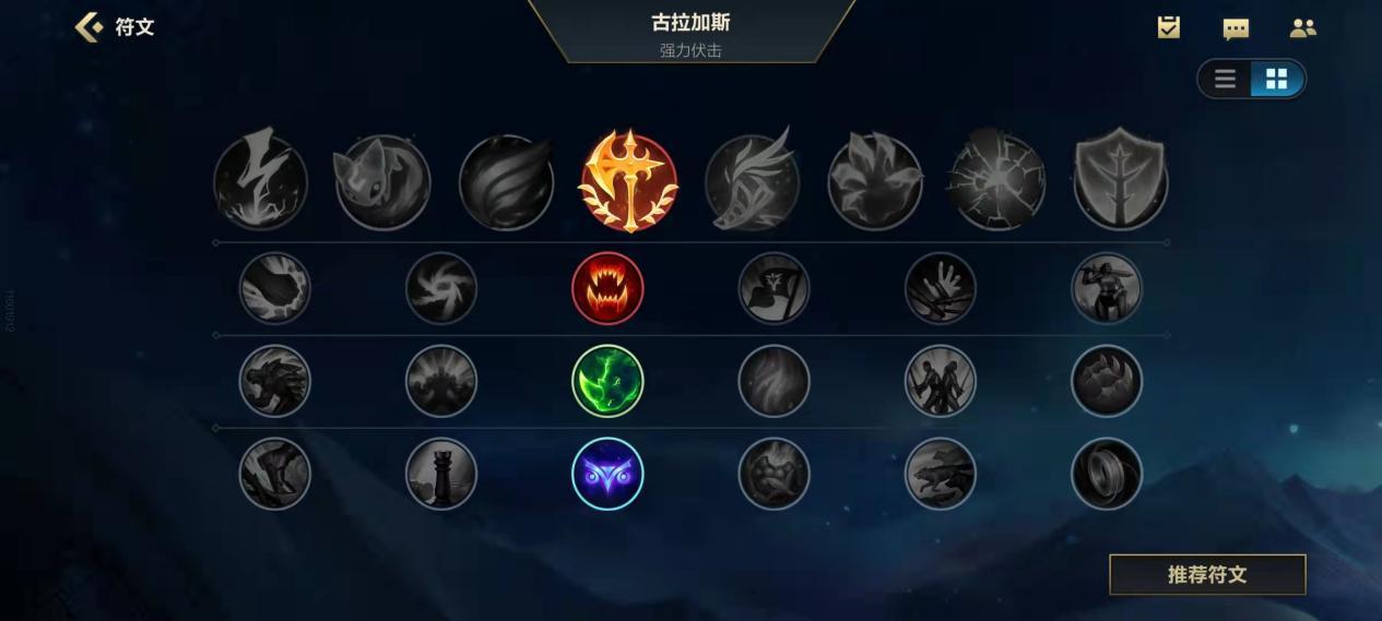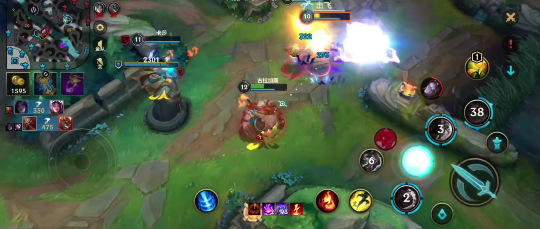 在前期打野中,必须要进化成蓝色惩戒,该惩戒效果可以减速敌方目标。酒桶的QER技能都有留人能力,再搭配惩戒的减速效果,可以增强技能的容错率。GANK时尽可能绕后,要看清楚敌方的兵线位置,选择一个最有利的切入点确保E技能不会被兵线挡住。如果没机会放E的话,可以先用Q技能和惩戒来留人,R技能建议在敌人减速或是被E技能控住的时候再衔接释放,否则丢空的概率很大。