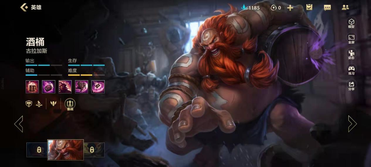 酒桶前期依靠被动基本上可以做到无伤刷野,释放技能后回血、减伤的机制可以让酒桶的续航能力变得更强。此外,酒桶的基础坦度要高于常规打野,在前期有比较强的抗压能力,且爆发伤害也非常恐怖。有开团能力和良好的GANK能力,团战价值高。