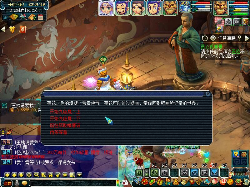 进入佛窟后,点NPC莲花开始九色鹿上;