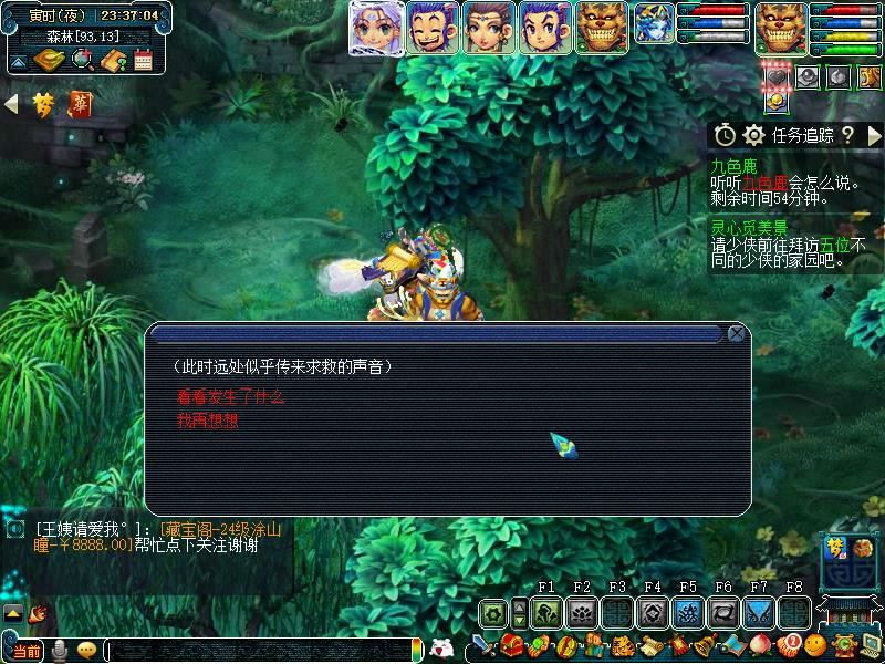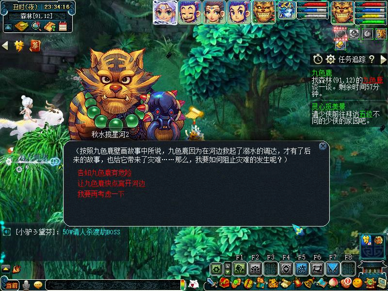 战斗完成返回森林,这里我们选第一项“继续说服九色鹿” ;