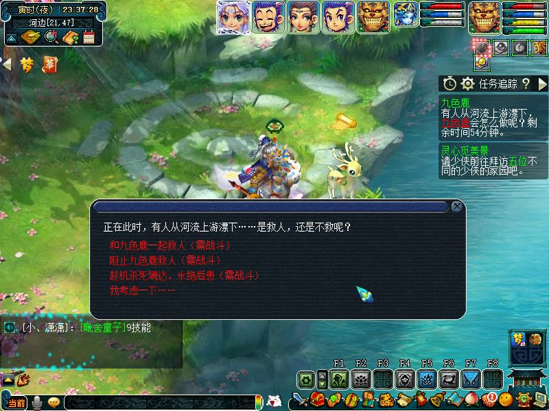 然后我们到了河边,这边我们选第一项“和九色鹿一起救人” 进入战斗,战斗难度比较简单;