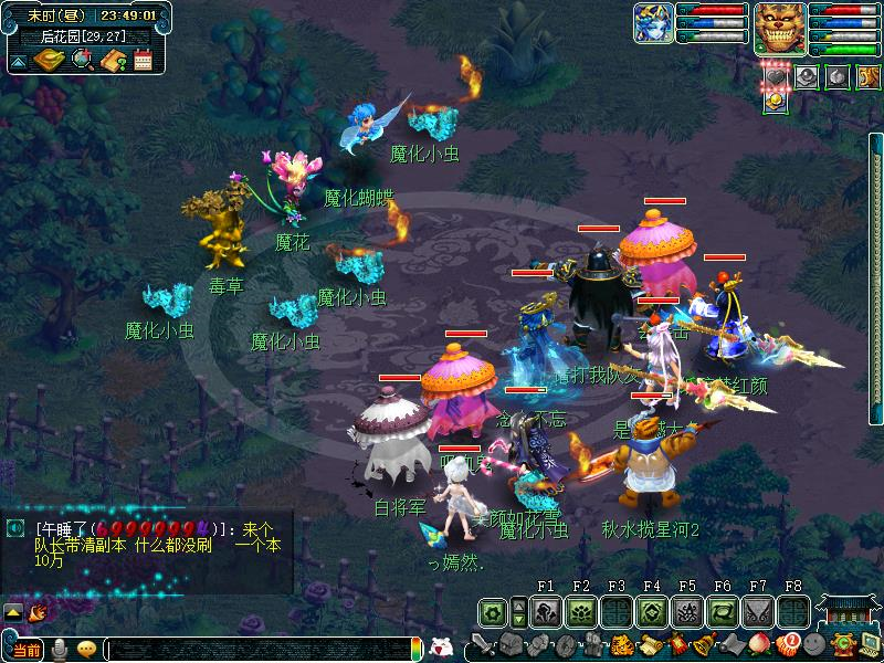 然后我们找灵芝娃娃进入战斗,主怪灵草妹妹法伤微高,花中仙子会封人,一般都是先封队长,战斗任务一般