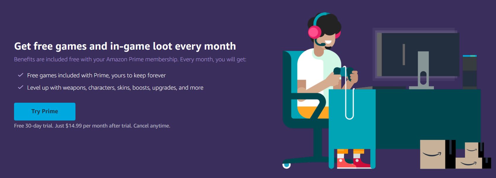 3.因为每月领取游戏是会员免费,没有会员的小伙伴需要点击“Try Prime”入手;