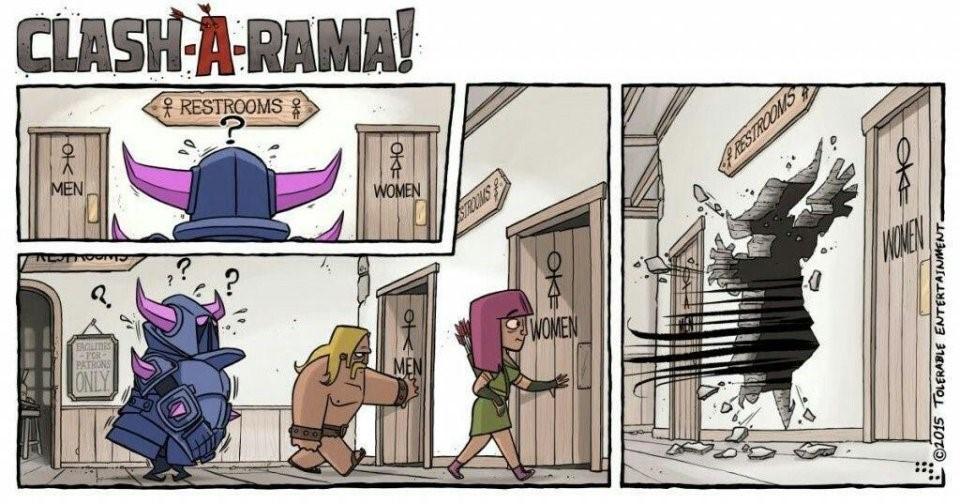 在《部落冲突》官方Twitter上发布了这样的漫画,很显然它并不知道往哪个厕所走去。