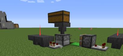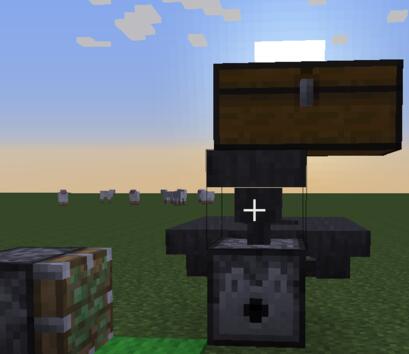 在发射器左边如图这样摆放,注意漏斗是按方向这样摆放的,必须保证如果扔进漏斗里东西他可以无限在漏斗里流来流去。