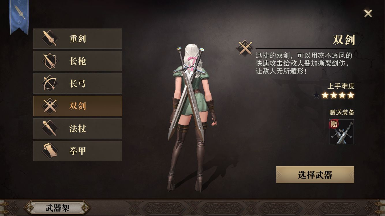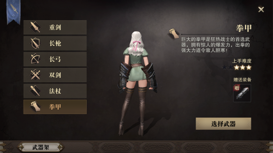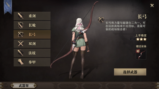 总评:长弓上手难度较高,如果新手玩家对于自己的距离把控能力有一定自信的话,还是可以选择这个灵动且伤害爆表的装备的。