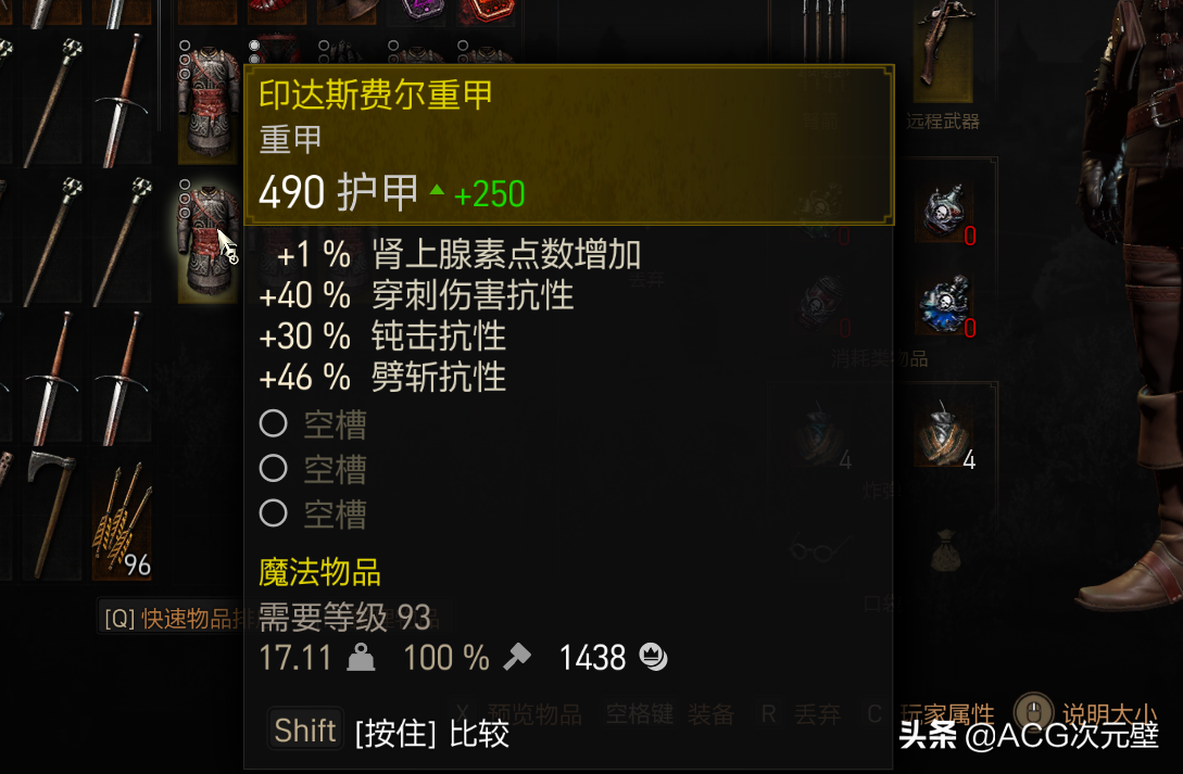 印达重甲属性护甲类型装备,在游戏中可以给玩家提供40%的穿刺伤害抗性、30%的钝击抗性和45%的劈斩抗性,这在新手村的用处是非常大的,毕竟在萌新阶段玩家的游戏操作水准都不是很高,但是角色的攻击伤害还是相对而言比较高的,玩家若是能够在这个阶段中获取到这种大幅增强防御力的装备的话,就可以在对战中坚持更长的时间,获胜的几率会大幅增加。