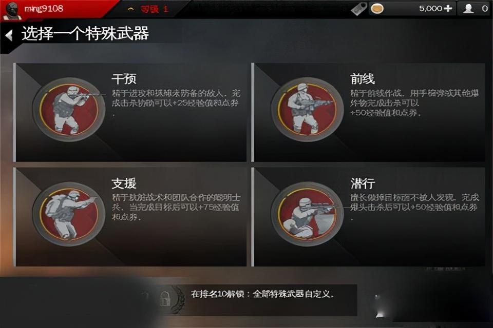 武器装备完之后,点击“游戏”就可以进入游戏设置了。只有在排名赛可以获得经验和点券,如果你是冲着更高级的武器装备去的话,就直接泡在排名赛里吧。