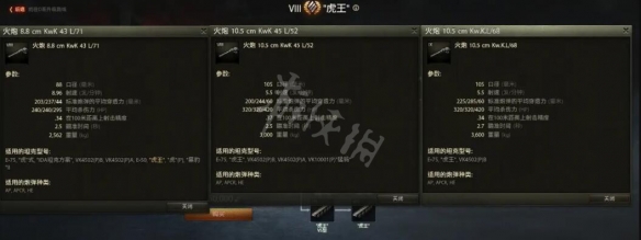 1.火力。虎王顶级炮为10.5cmKw.K.L/68(俗称长105炮),银币弹穿深225、金币弹穿深285,伤害320,炮精准,伤害一般。