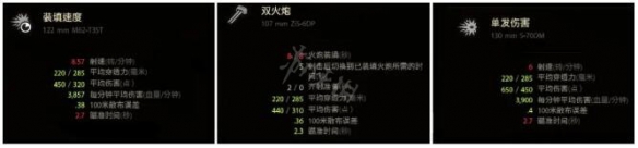 在第一次火力升级时可以选择弹夹填装主炮或者高射速主炮,一梭子弹夹5发可以在8秒内输出1150点伤害,在战局初期还是可以秒掉一辆战车。高射速主炮则拥有更高的容错率,避免长时间火力真空期。