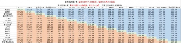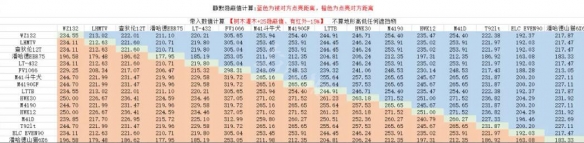 以下是客户端内所有8级LT都按照相同配置设置过后的数据图:
