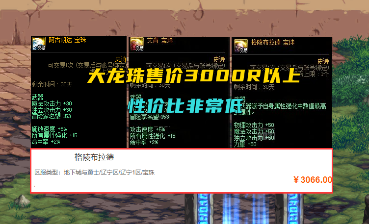 但是,一颗“大龙珠”普遍售价3000R以上,而且还有价无市,拍卖行几乎不可能出现,只能通过其他交易平台入手,而这里又涉及到“性价比”的问题。