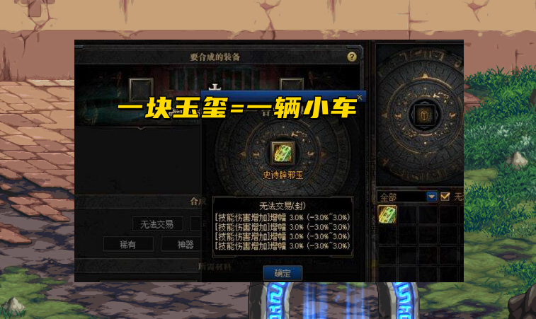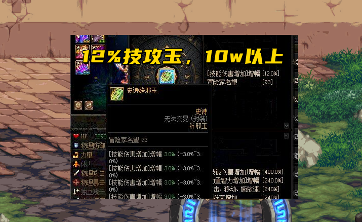 其实自从“魔剑时代”以后,地下城中真正特别值钱的装备道具,都是不可交易的,比如强化、增幅等;但唯独“辟邪玉”是个例外,它不仅可以交易,而且售价还高得一塌糊涂。