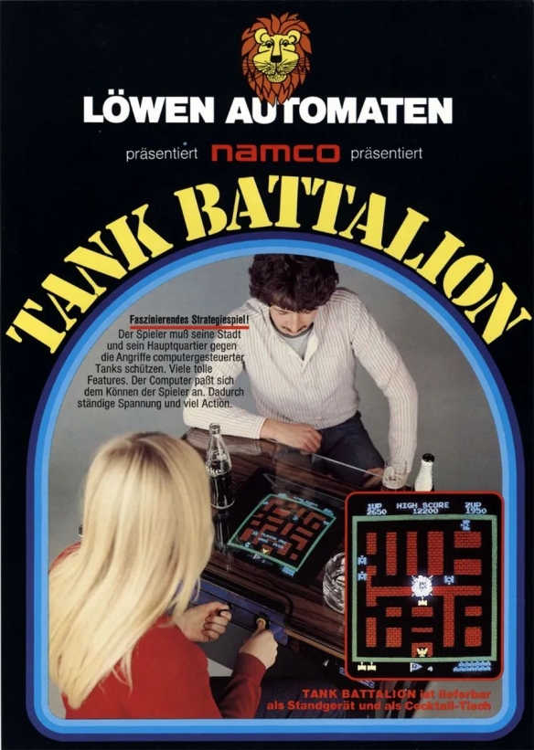 《坦克大战》玩法原型最早出现街机平台,1980年南梦宫推出了Tank Battalion,玩家可以操作一辆坦克,在固定场景中四方向移动,每关有20辆敌方坦克,你需要保护住屏幕正下方的鹰标基地,消灭全部20辆坦克之后即可过关,画面下方的菜单显示着玩家剩余生命,以及本关敌方所剩坦克数量,如果基地被敌人摧毁或是我方坦克被击中失去所有生命,都将宣告游戏结束。
