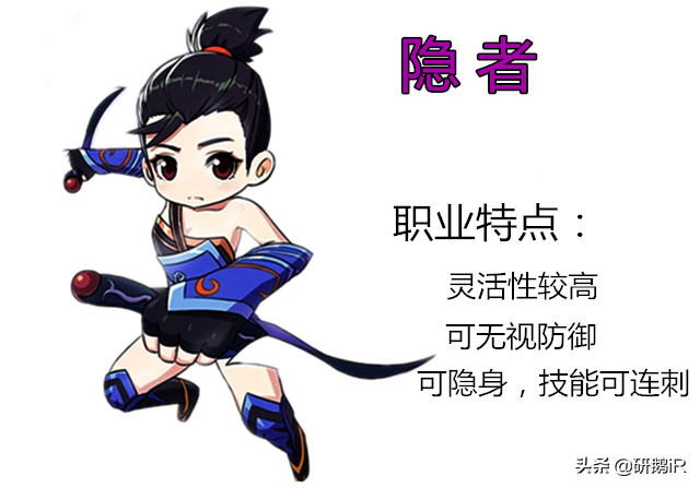职业特点:灵活性较高,可无视防御,可隐身,技能可连刺。
