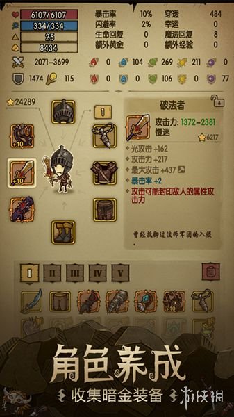 1-20层:前面20层只要必须要先堆魔力。魔力上去之后回血效果极佳。玩家可以利用每一个层洞窟里面的符文来增加属性,其中红色符文加攻击、紫色符文加魔力、绿色符文加生命、蓝色符文加魔法值、黄色符文加防御。