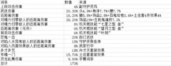 再比如机关棍技能树里,有个技能叫做“七星之型”,效果是提升对精力为0敌人的伤害,这个没有写在特殊效果栏中,计算的时候也是同样方式叠加。