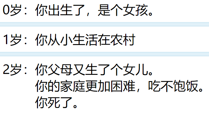 而当你在一次次的意外中,咀嚼出一点黑色幽默之后,对这个游戏的了解,也让你注意到了,那些一开始以为无甚卵用的属性点,反而是那只导致世界毁灭的蝴蝶。比如,在游戏中你将家境属性归零,那么基本上你这趟旅程很难活过三岁。