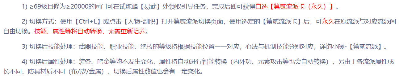 如果说这是个氪金功能,那么反而不值得大惊小怪,但偏偏玩家完全不需要对此进行付费。新版本里,只要玩家修为大于2万,等级高于69级,就可以在完成引导任务后,免费获得“第二流派卡”。对于正常流程的玩家来说,这些等级和修为要求,几乎等于不存在。即便等级不够的,也只需要稍微提升一下即可。