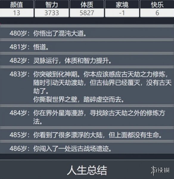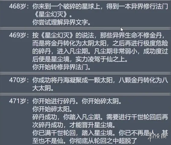 如果轮回次数大于1000,则获得目前的最高结局,星生(星尘境)。