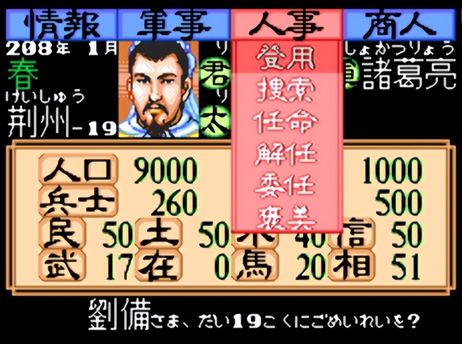有个有趣的小插曲,笔者小的时候有个同学超喜欢玩该作,每次到他家都在玩,而他玩的时候居然90%的时间都在登用(笔者90%时间是打仗),可以说他把登用这个功能用得出神入化。